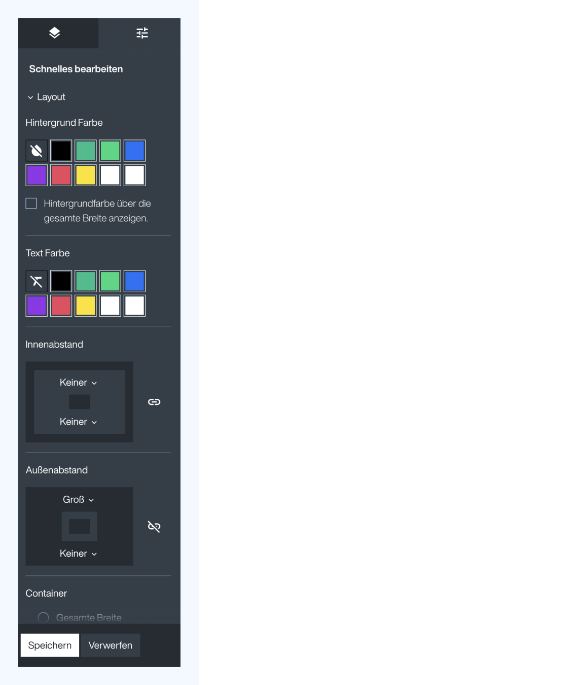 Darüber können in der rechten Sidebar Einstellungen zum Aussehen des Smart-Blocks wie z. B. Hintergrund- und Textfarbe sowie Abstände zu anderen Smart-Blocks vorgenommen werden.